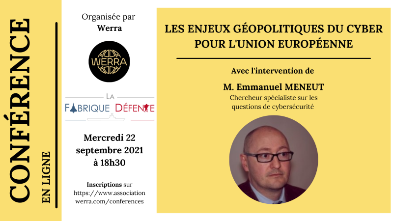 Dans le cadre de la Fabrique Défense , Werra et le Ministère des Armées ont le plaisir de vous présenter leur nouvelle conférence portant sur les enjeux géopolitiques du cyber pour l'Union européenne. 🇫🇷 🇪🇺