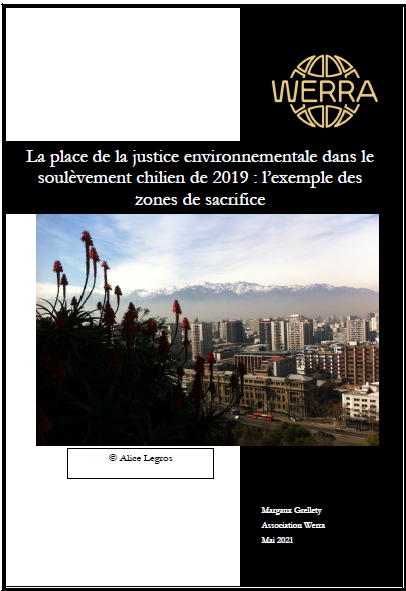 "Les premières manifestations environnementales apparaissent au Chili dès la fin des années 1990 et gagnent en visibilité avec la médiatisation croissante des catastrophes environnementales et l’inscription des enjeux environnementaux à l’agenda international. (....) Le propos de cet article est de montrer quelle place occupe la lutte pour la justice environnementale dans la montée de la contestation sociale contre le modèle politique et économique chilien, symbolisé par la Constitution de 1980, qui atteint son paroxysme en 2019 avec l’obtention du référendum national. La question est traitée avec l’exemple des zones de sacrifice, localités qui concentrent une haute proportion d’activités économiques polluantes aux effets désastreux sur les populations."